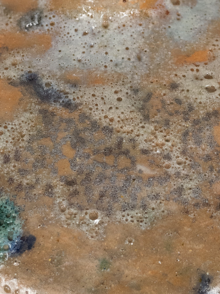 Glazed and underglazed ceramics. One-off piece by artist Harry Thring.